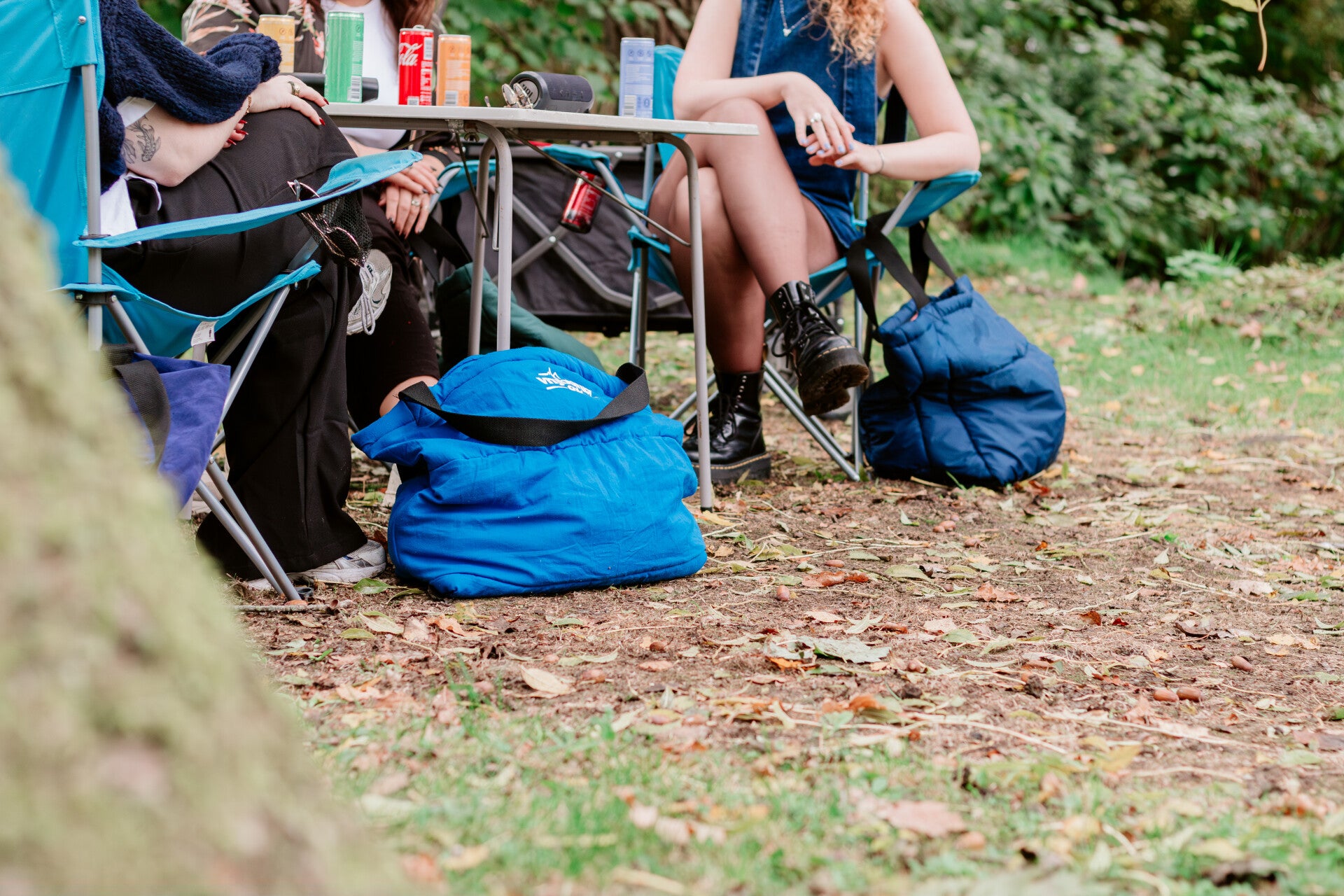 De tassen zijn gemaakt van slaapzakken en luchtbedden die achtergebleven zijn op festival campings.